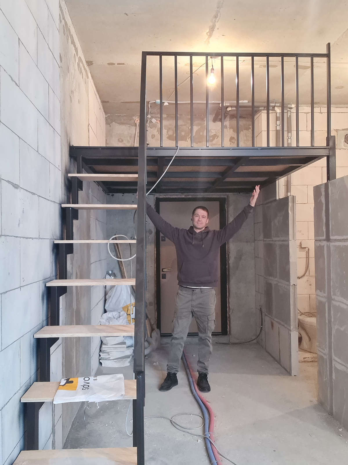 Задачей в этом проекте для нас было - увеличение полезной площади для размещения спального места с помощью антресольного этажа. Лестница на него должна быть компактной, но удобной. Не отнимать лишнего места в и без того небольшой квартире.