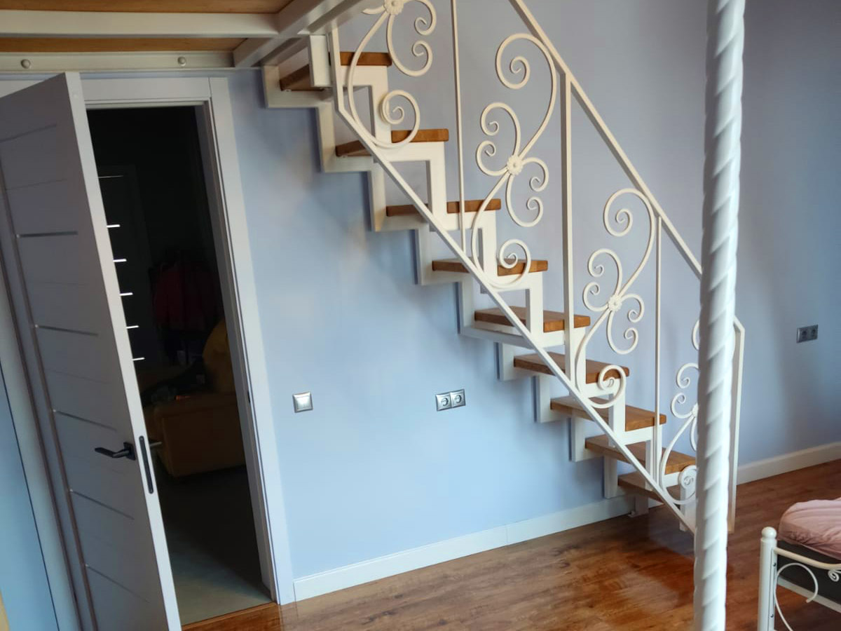 Установка и сборка конструкции производилась в жилой комнате на стадии чистового ремонта. Для этого вся конструкция была сделана разборной. Мы собирали ее на болтовом соединении. Специальный инструмент и высокая квалификация наших установщиков позволяют нам собирать готовые окрашенные детали без нарушения порошкового покрытия металлоконструкции.
