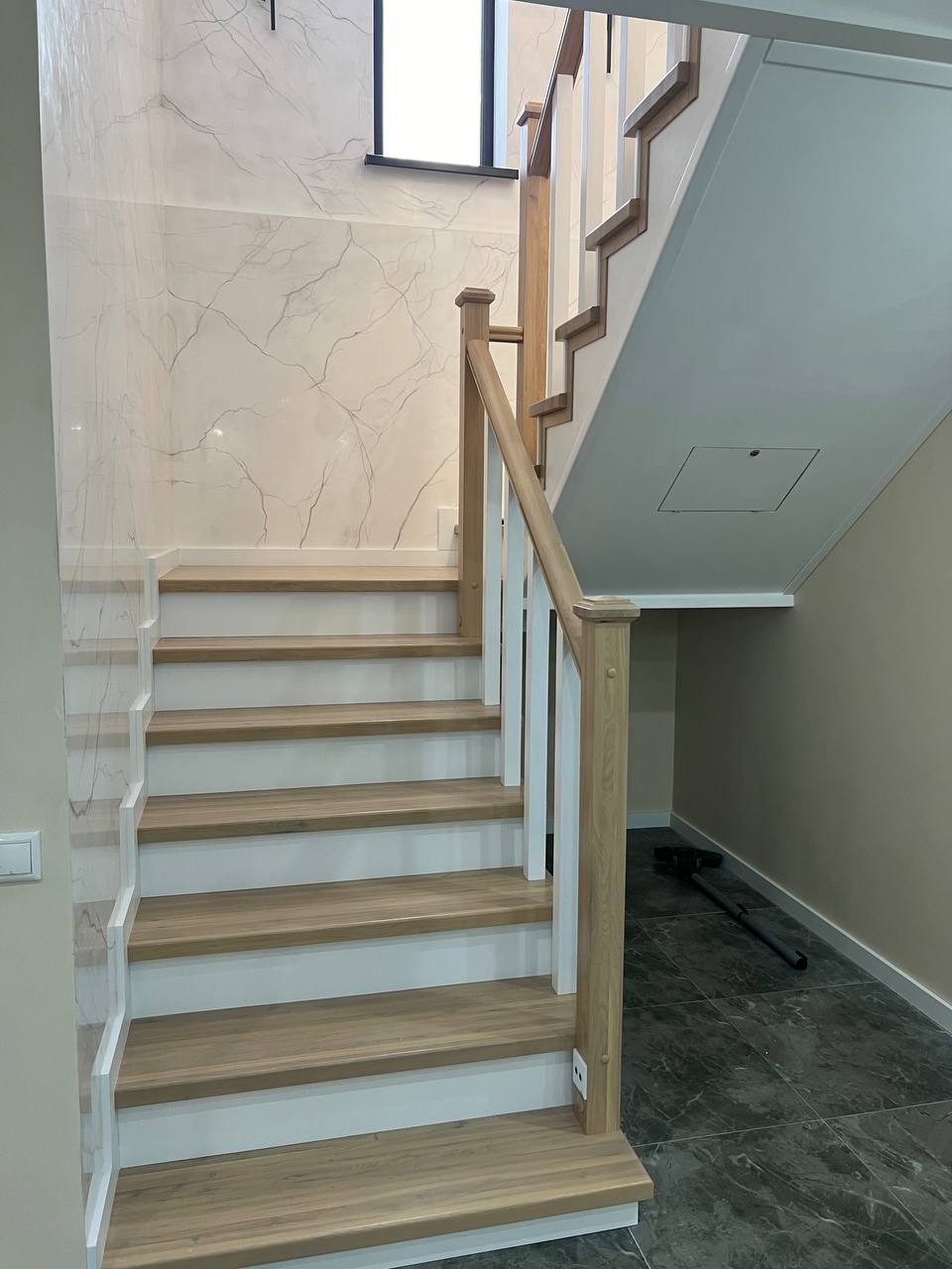 Классическое исполнение лестницы на второй этаж. Безукоризненна в своем удобстве, элегантна и практична.